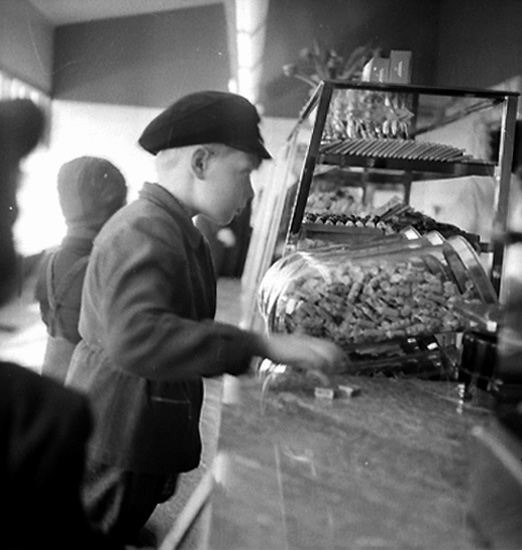 Titel: Konsum Rosta, brödbutiken, affärsinteriör, kunder och personal.