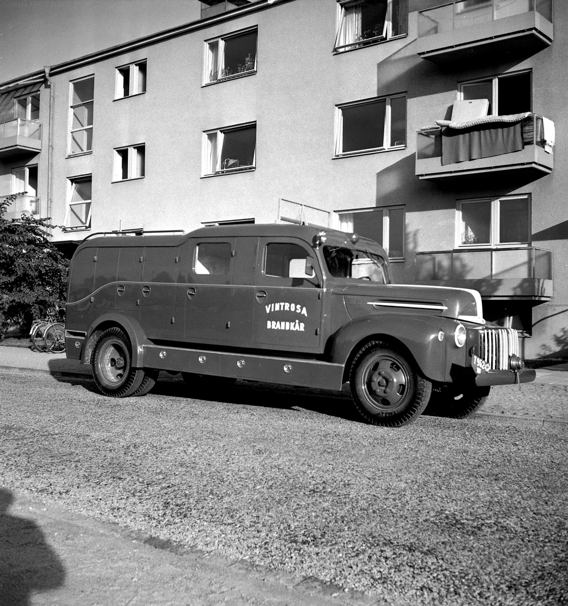 Brandbil från Vintrosa Brandkår. Bostadshus.