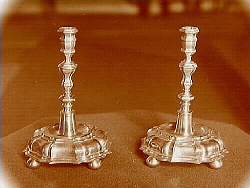 Två silverljusstakar skänkta av greve Posse till Glanshammars kyrka år 1737.