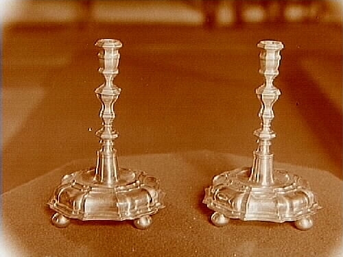 Två silverljusstakar skänkta av greve Posse till Glanshammars kyrka år 1737.