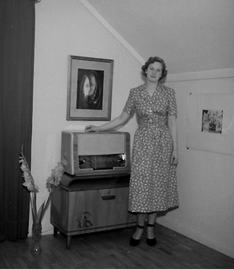 Titel: Rumsinteriör, en kvinna. Bertil Sehlin (beställare).