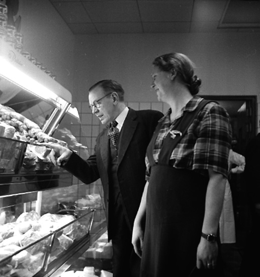 Titel: Konsum snabbköp, affärsinteriör, kunder och personal.