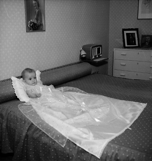 Rumsinteriör, en baby, barndop.