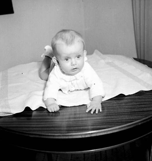 Titel: Rumsinteriör, en baby. Bigge Holmberg