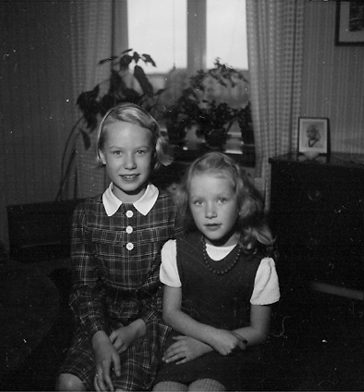 Rumsinteriör, två flickor.