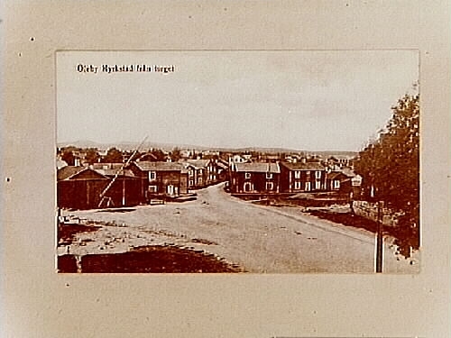 Öjeby kyrkstad från torget, en- och tvåvånings trästugor.