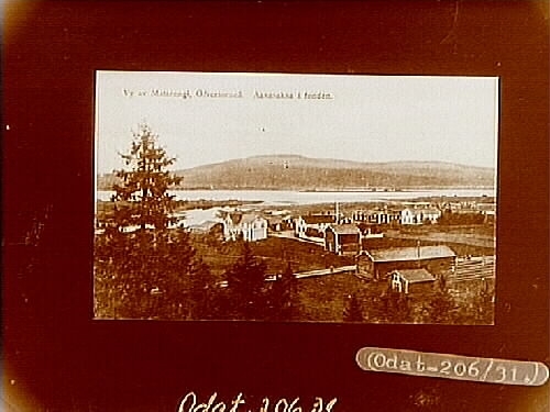 Vy av Matarengi. Aavasaksa i fonden, ett flertal bostadshus.