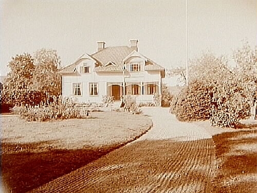 Envånings villa med inredd vind, två takkupor, öppen veranda.