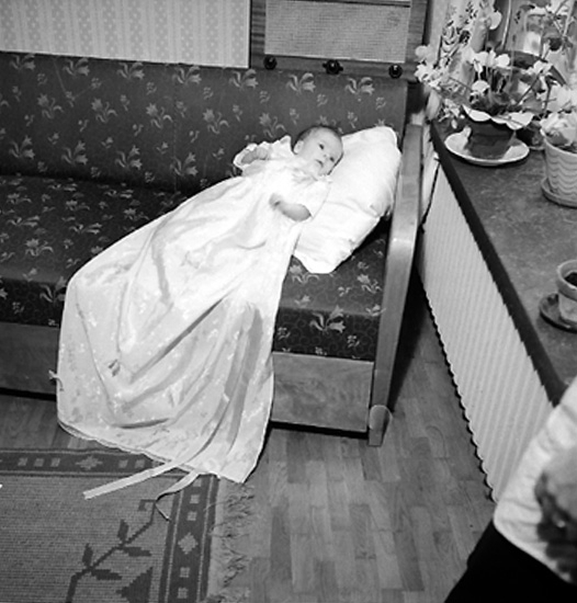 Rumsinteriör, en baby, barndop.