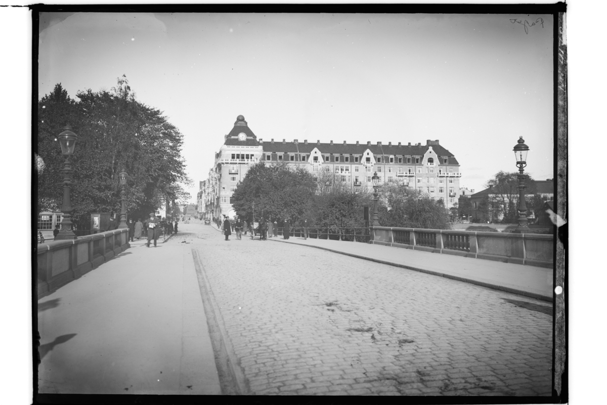 Titel: Centralpalatset, sexvånings bostadshus (hyreshus). Storbron, Storgatan norrut.