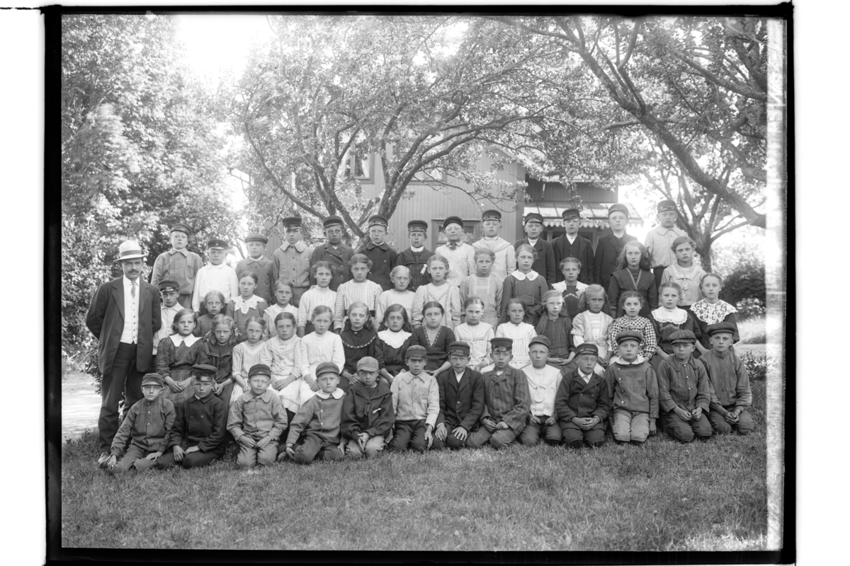 Usta skola, skolbarn med skollärare K.J. Uddman.