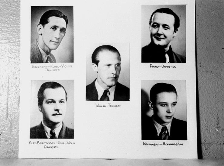 (De spelar: tenorsax-klar.-violin-trumpet; alt.o. baritonsax-klar.-violin-dragspel; violin-trumpet; piano-dragspel; kontrabas-refrängsång)