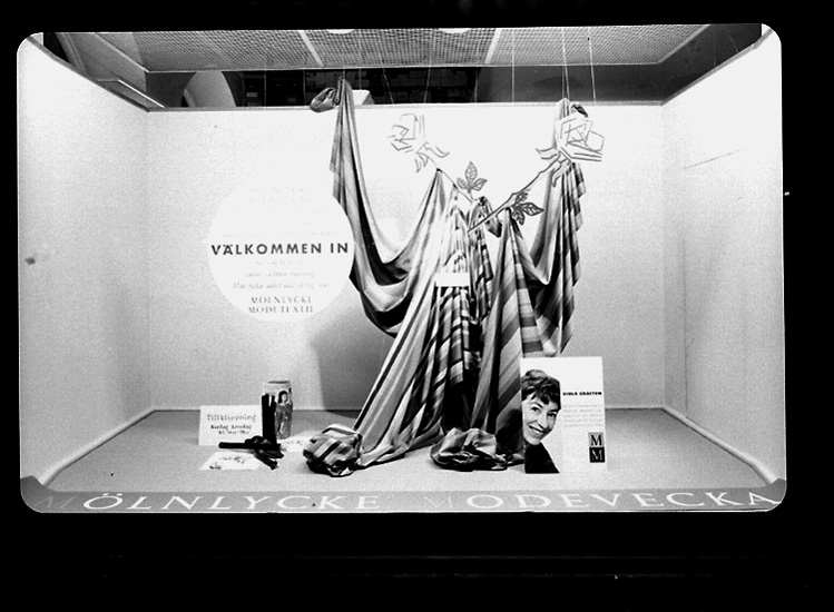 Håkansons, skyltfönster med tyger, "Mölnlycke Modevecka".