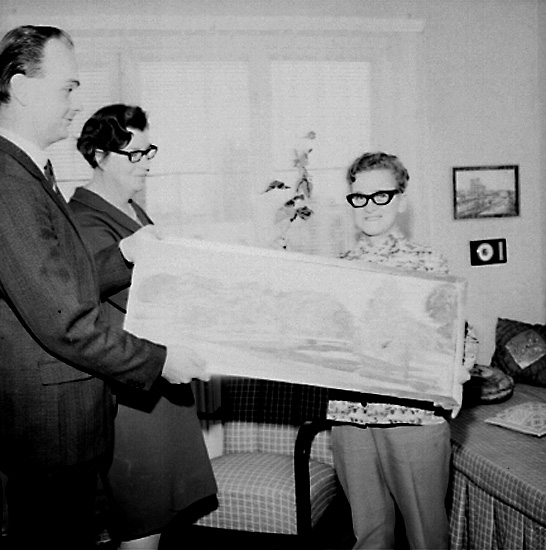 Titel: Interiör, tre personer, Kexens Konstklubb. Örebro Kexfabrik