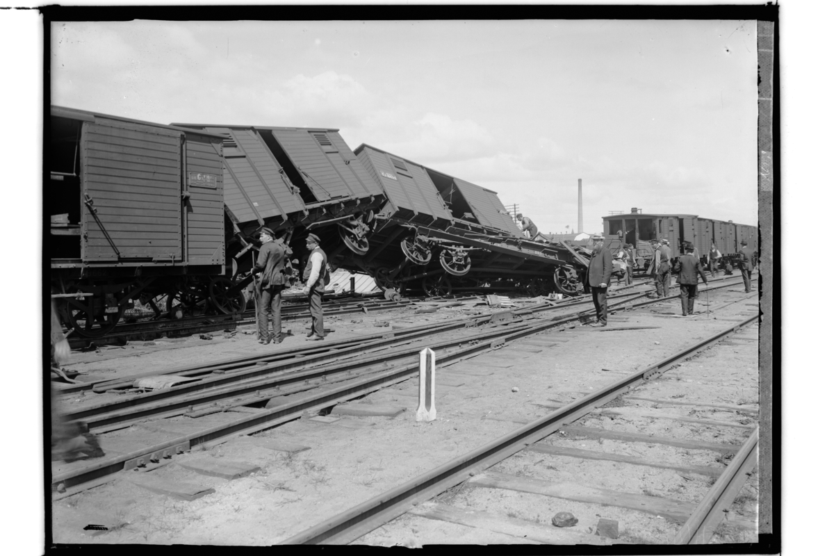 Örebro Södra Järnvägsstation, järnvägsolycka, urspårade järnvägsvagnar.