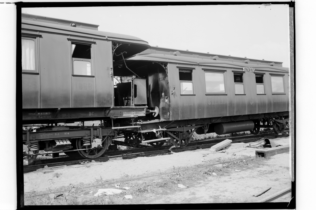 Örebro Södra Järnvägsstation, järnvägsolycka, urspårade järnvägsvagnar.