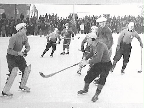 Titel: Bandymatch vid Eyravallen. Situationsbild ÖSK-Nässjö.