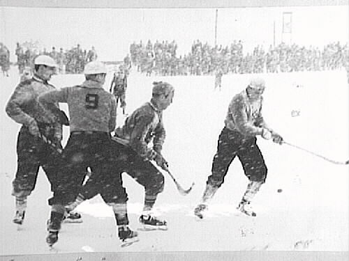 Bandymatch mellan Slottsbron(Karlstad) och ÖSK vid Slottsbron.
