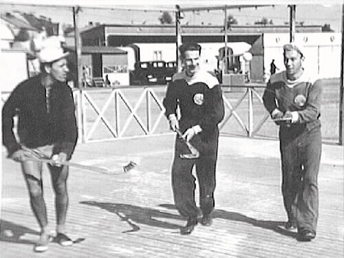 Så tränade bandyspelare innan isen frös till. Här på dansbanan (tivoli på den tiden) ÖSK:s Svensson, Törnblom och Magnusson.