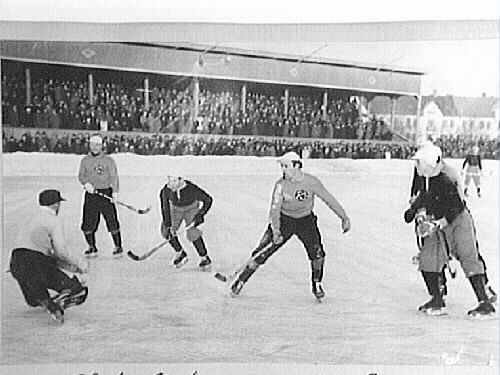 Bandy. ÖSK målvakt Gösta Andersson fångar bollen mot AIK.