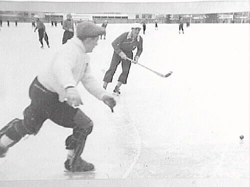 Målvakt Karl-Ivar Ekberg på språng. Han är pappa till Jan-Ivar Ekberg som stod för ÖSK i flera år.