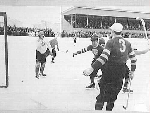 Bandy vid Eyravallen. Femte målet på Reimers, Stockholm.