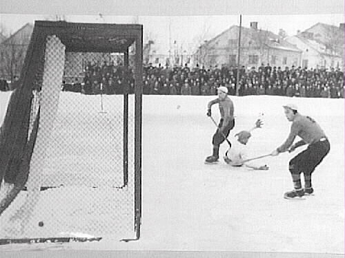 Bandy vid Eyravallen. ÖSK mål på Reimers.