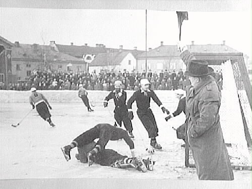 Mål för ÖSK mot Köping, flaggan upp av måldomare Gösta Pettersson.