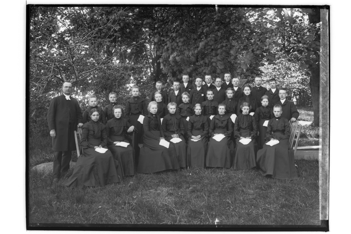 Konfirmander, 28 ungdomar och en präst.