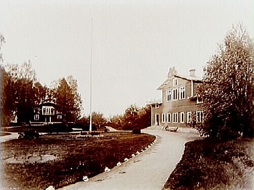 Kävesta Folkhögskola, en och en halvvånings bostadshus med frontespis, tvåvånings bostadshus med balkong.