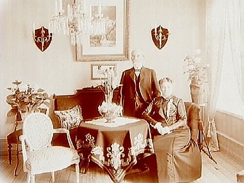 Titel: Rumsinteriör, 2 personer. Kassör C. W. Lindberg