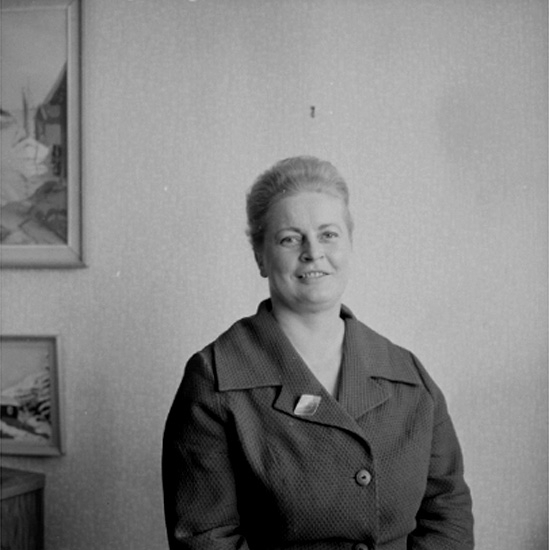 Titel: En kvinna, bröstbild. Maj Bilden tagen för pass.