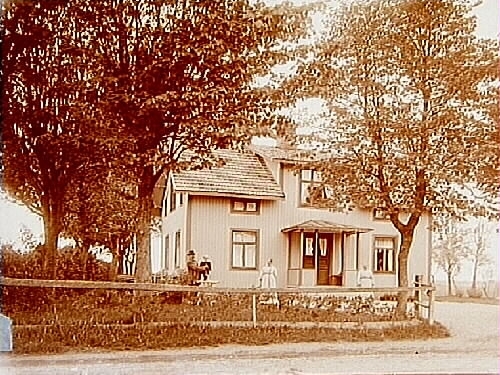 En och en halvplans bostadshus, med frontespis och förstubro.