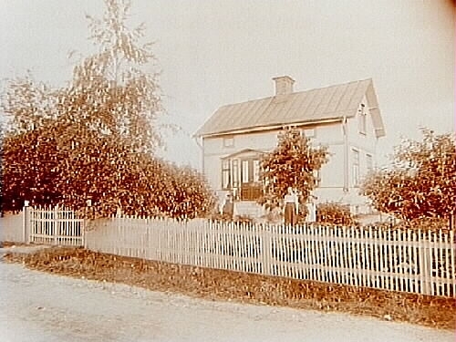 En och en halvvånings bostadshus, med inbyggd förstuga.