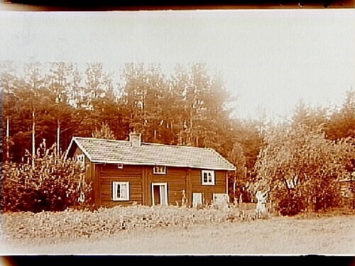 En och en halvvånings bostadshus, en kvinna framför huset.