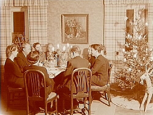Rumsinteriör, Lindskogs familj, 9 personer.