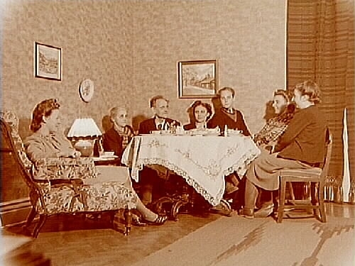 Rumsinteriör, Lindskogs familj, 7 personer.