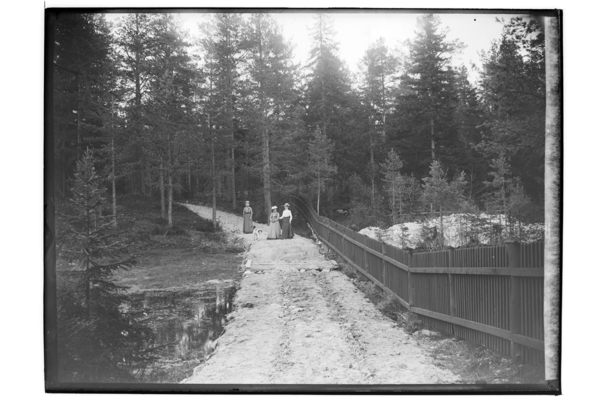 Vägen, tre kvinnor och en hund.