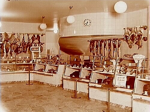 Konsum, affärsinteriör, charkvaror.