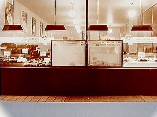 Konsums skyltfönster, fisk, skogsfågel.