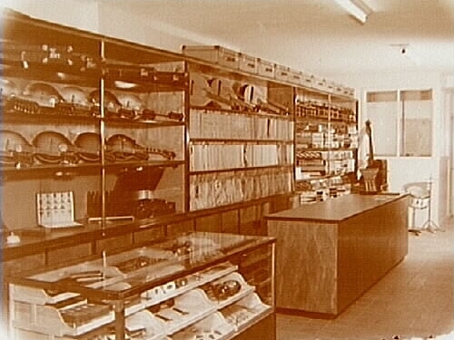Skandia musik AB, affärsinteriör, musikinstrument.