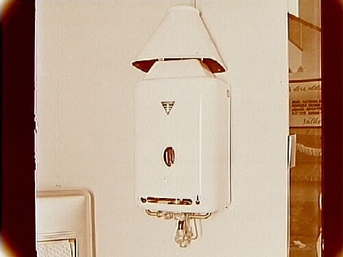 Kvarntorps gasol, varmvattenberedare på väggen.