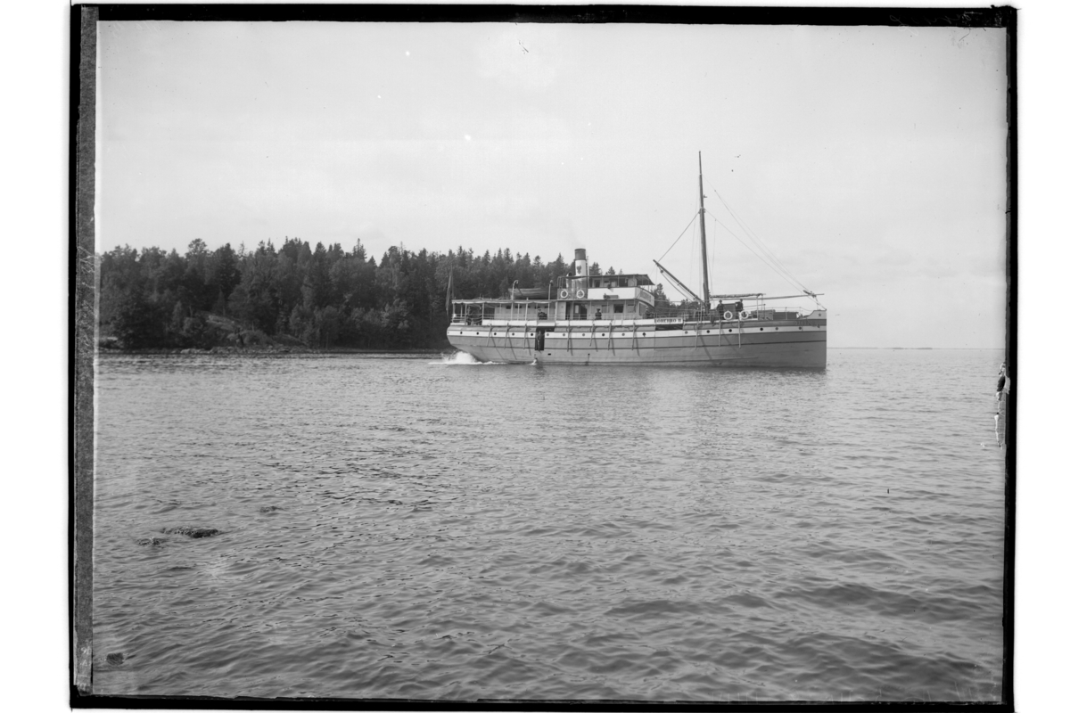 Titel: Läppe brygga, Ångfartyget Örebro II vid bryggan.