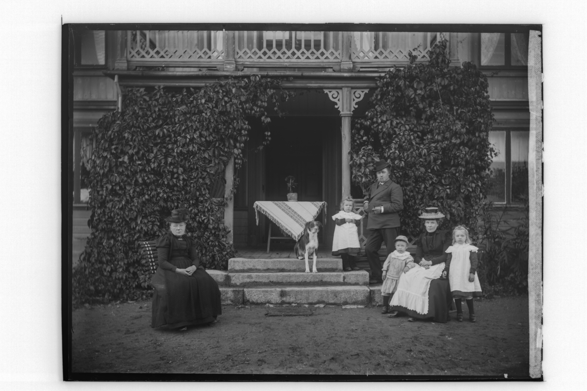 Bostadshus, 6 personer framför huset.