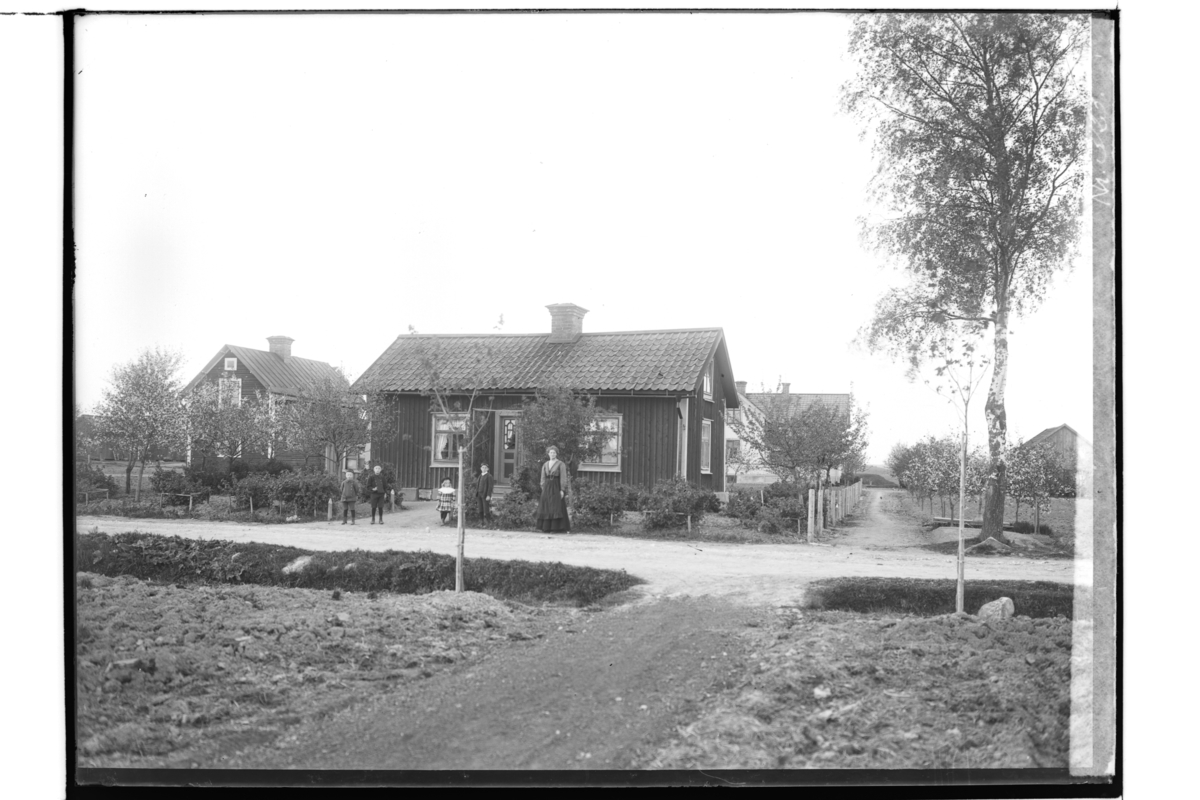Parstuga och enkelstuga, en kvinna och 4 barn.