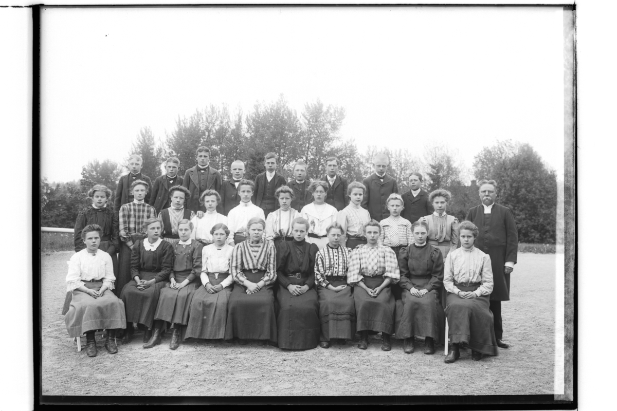 Konfirmander, 29 läsbarn och pastor Dahlstedt.