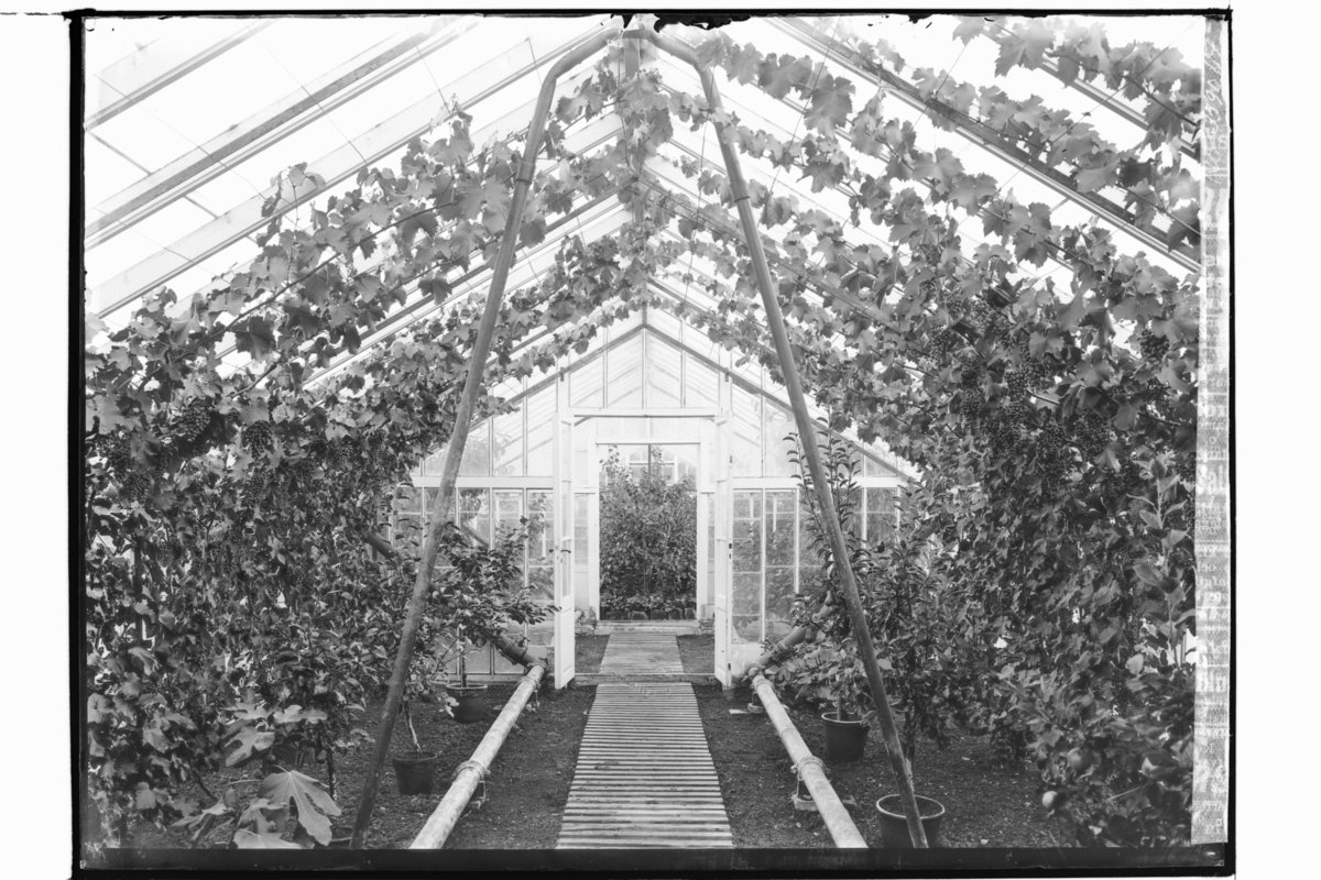 Steninge Slott, växthusinteriör med vindruvor, "Vinhuset".