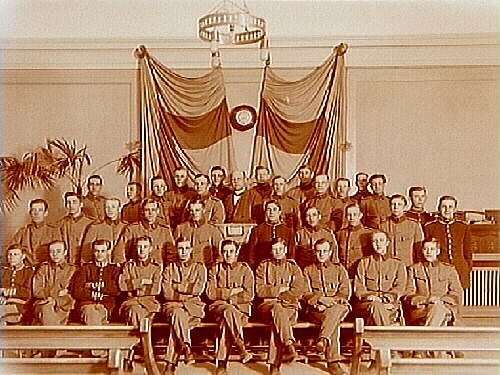 Soldathemmet Grenadjären, interiör, 34 soldater, troende beväringar och pastor Öberg.