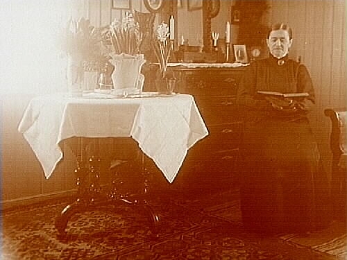 Rumsinteriör, en kvinna.