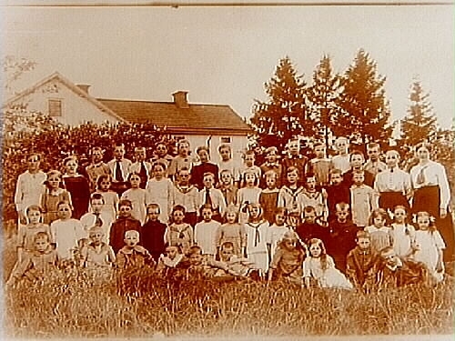 Hagalunds skola, en och en halvvånings skolbyggnad i bakgrunden.